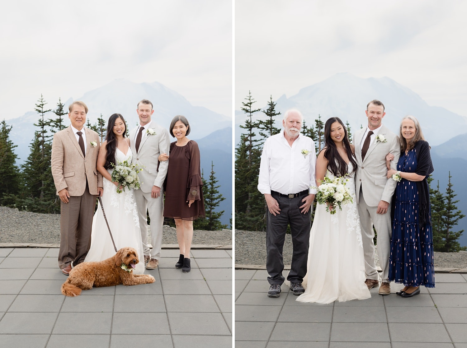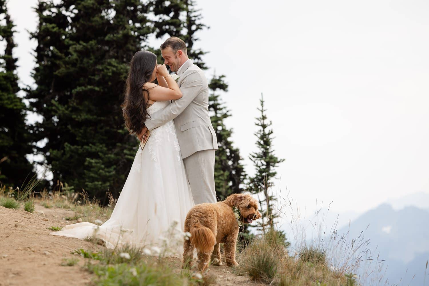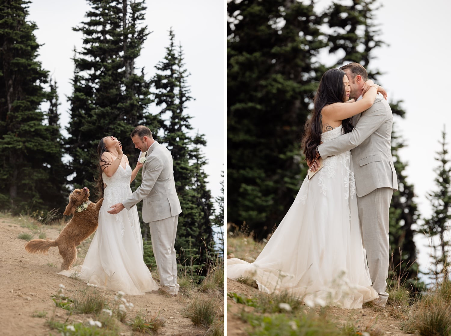 They originally planned a simple Seattle courthouse or greenhouse ceremony from Boston, but ultimately wanted something meaningful, outdoors, and close to home. As two people who love the mountains (and wanted their pup Theo there), choosing a Crystal Mountain wedding in WA ended up being the perfect fit. And because Crystal is also my home mountain, documenting their day there felt extra special.