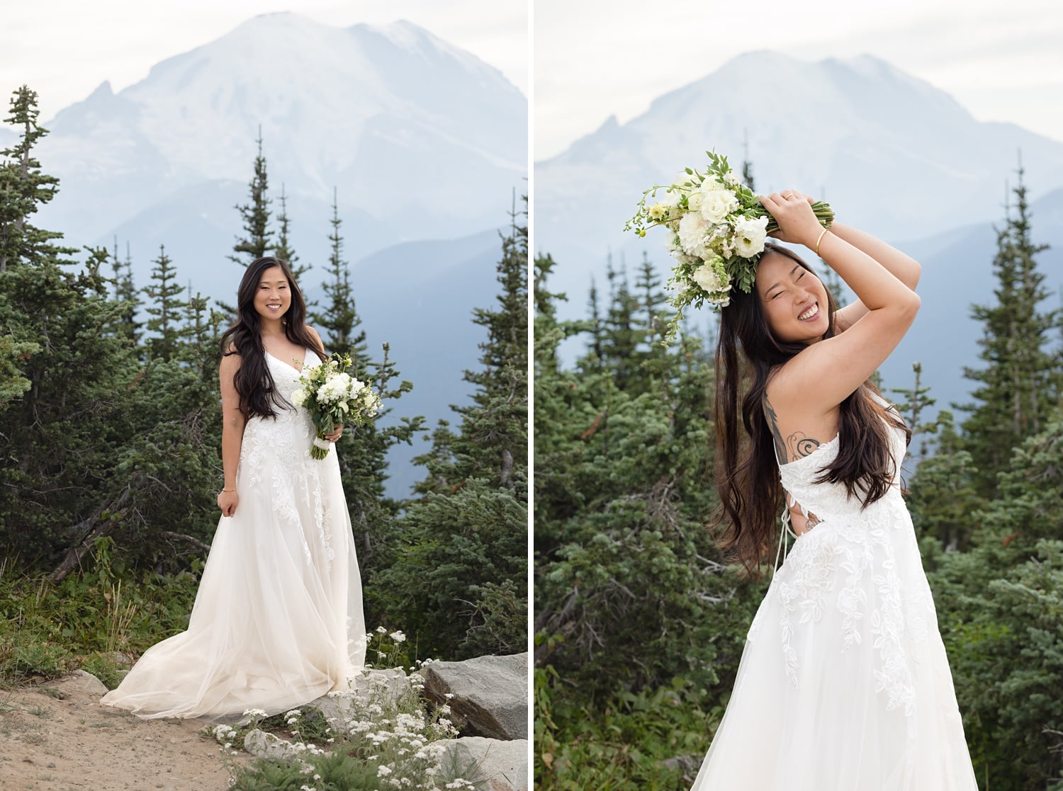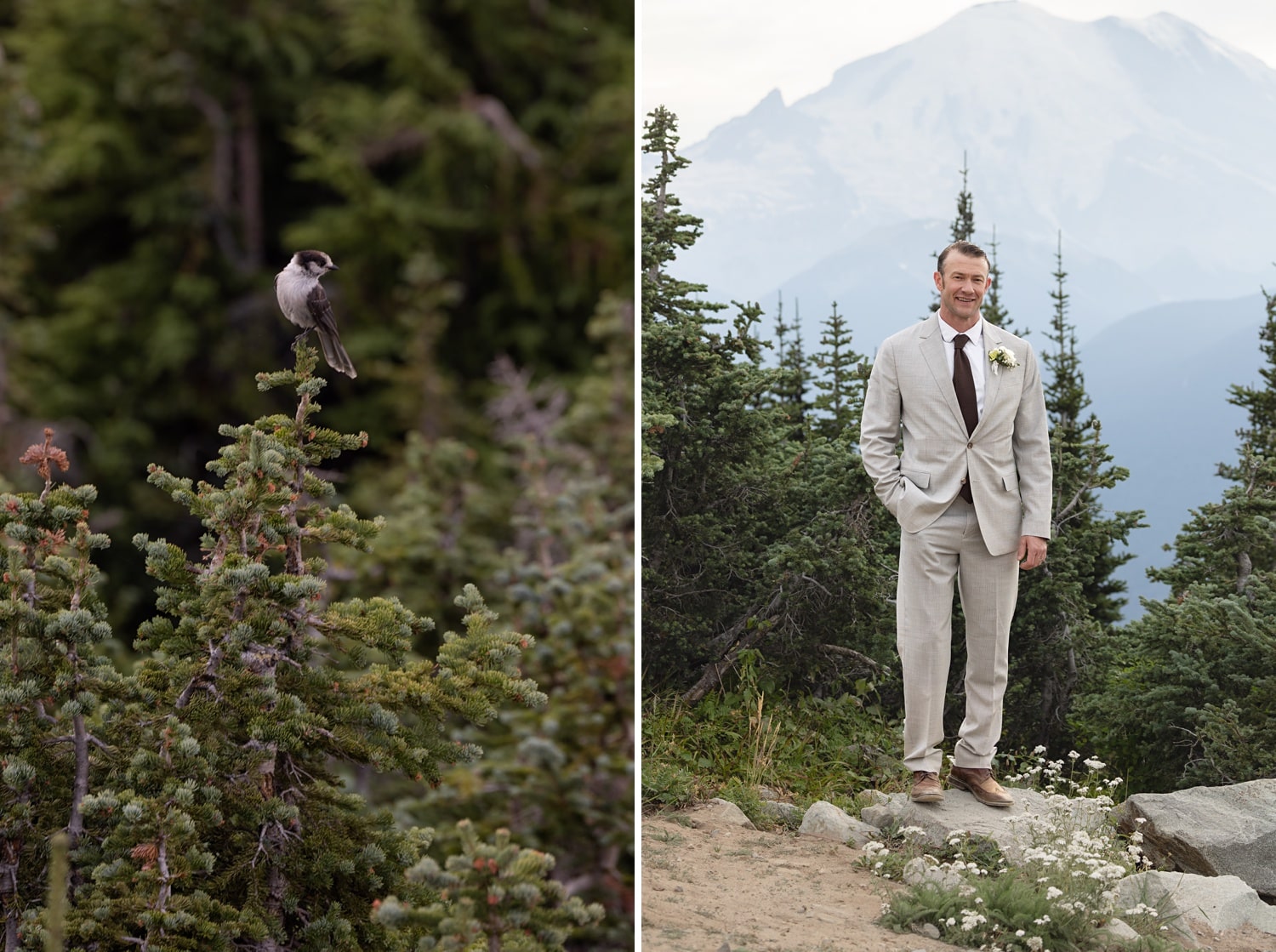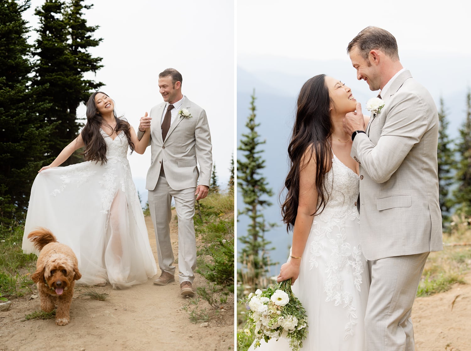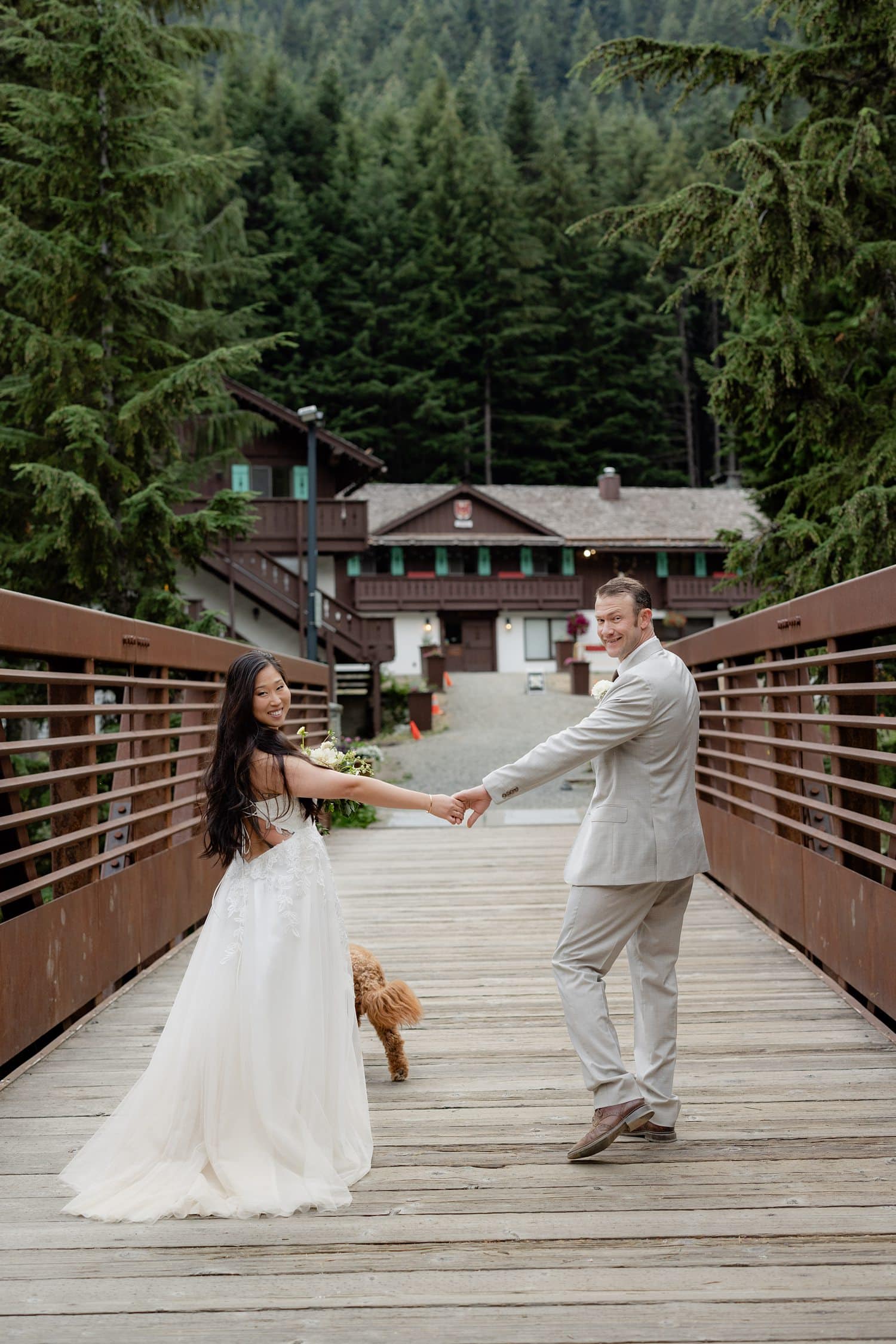 They originally planned a simple Seattle courthouse or greenhouse ceremony from Boston, but ultimately wanted something meaningful, outdoors, and close to home. As two people who love the mountains (and wanted their pup Theo there), choosing a Crystal Mountain wedding in WA ended up being the perfect fit. And because Crystal is also my home mountain, documenting their day there felt extra special.