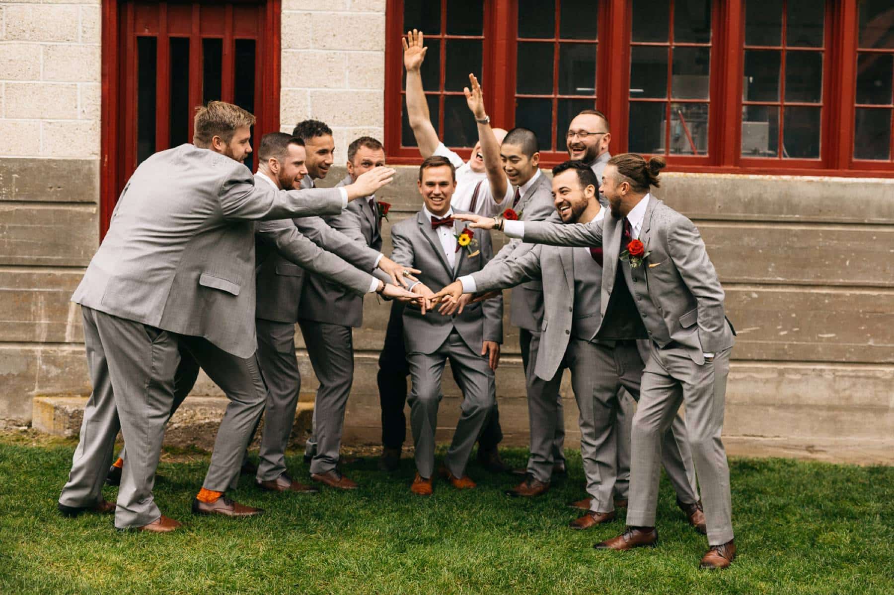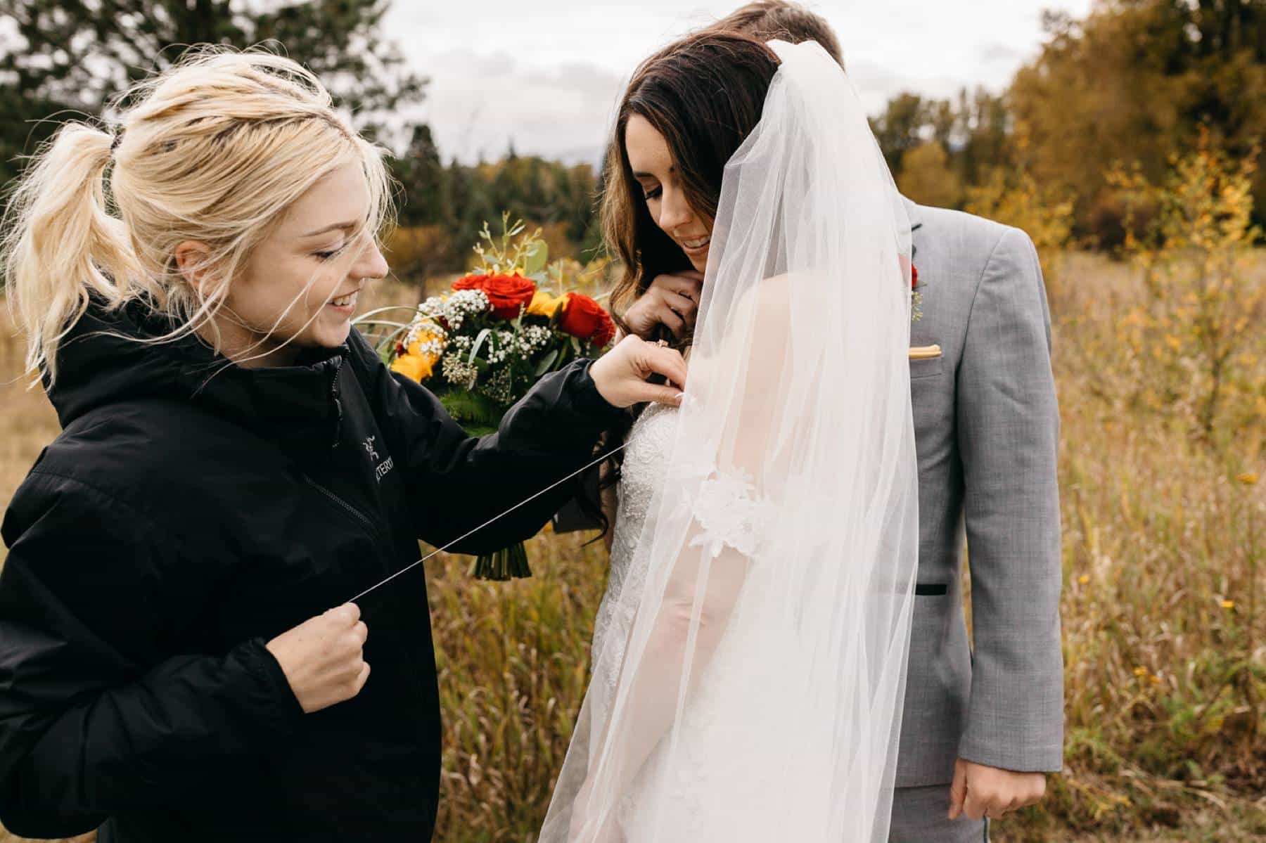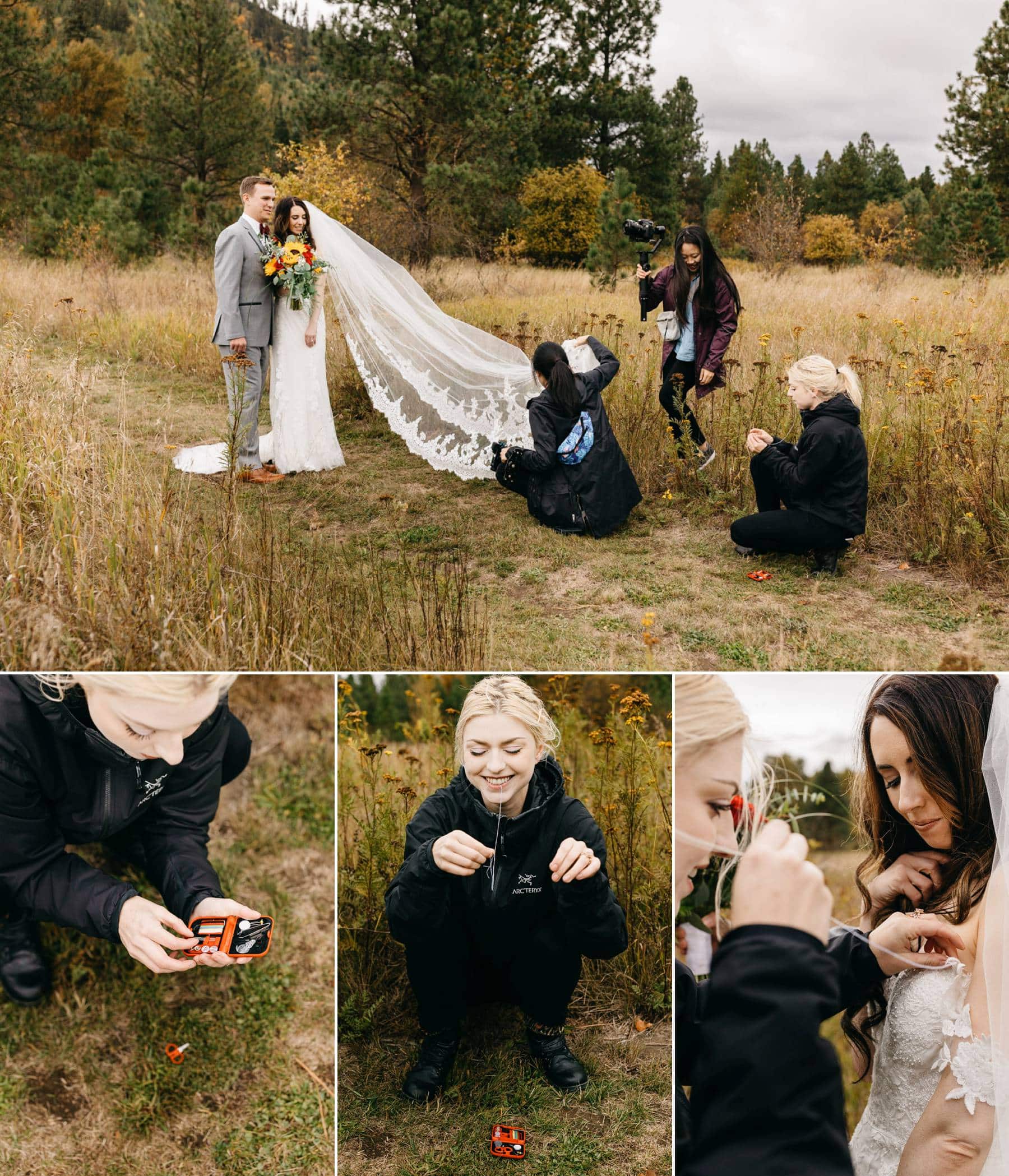 Some other memorable moments from that day include my best friend and second shooter, Melanie, skillfully sewing Lucy's dress during our portrait session, as well as Tyler's hilarious "shake face," which you can see in the wedding party photos below.