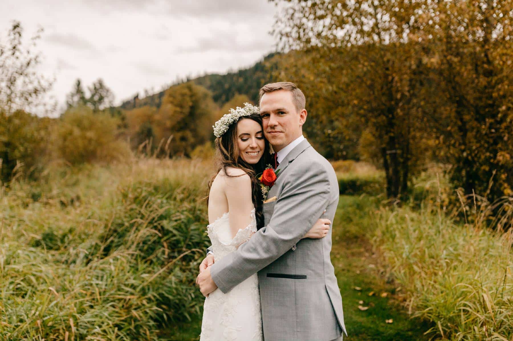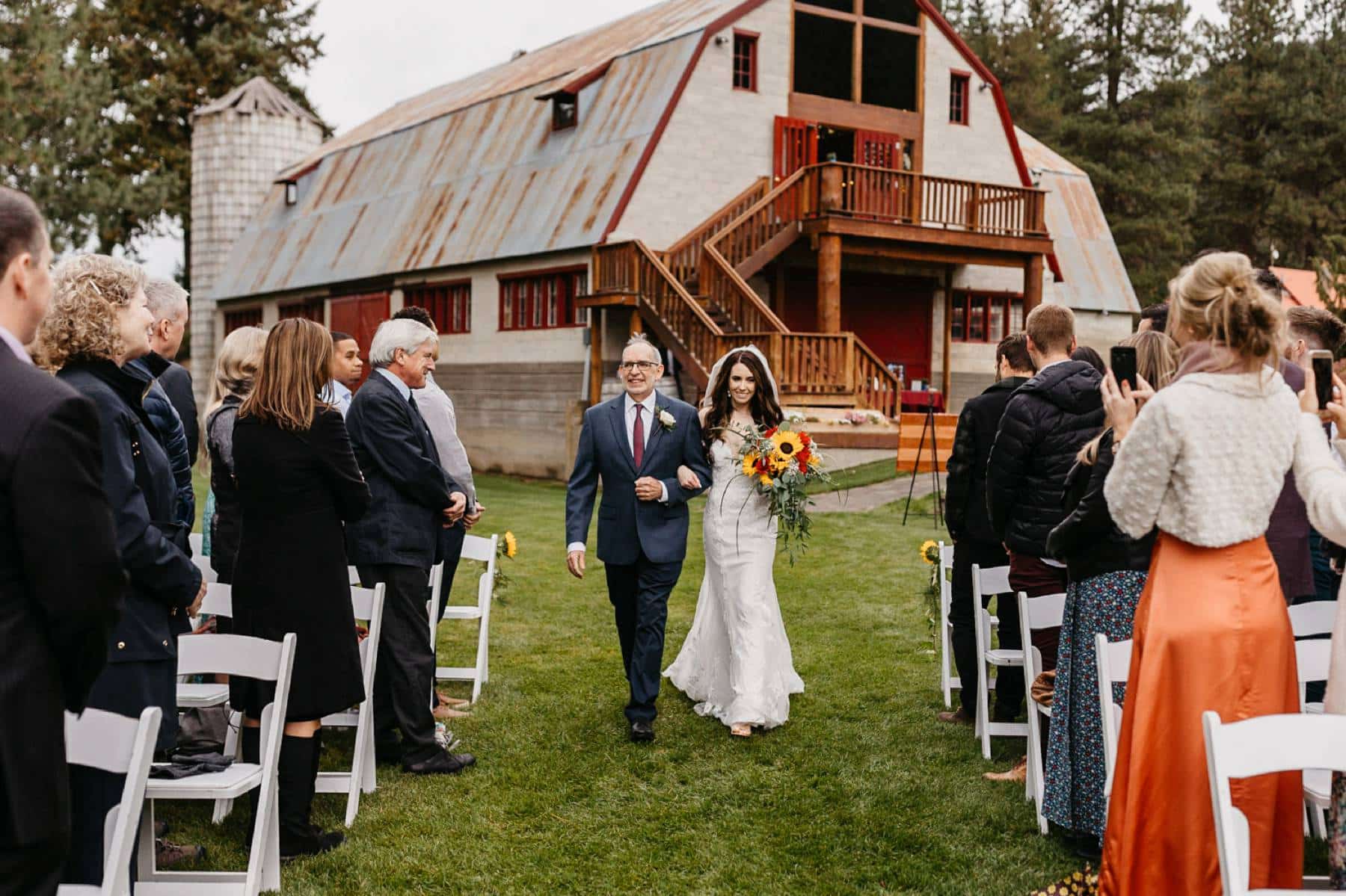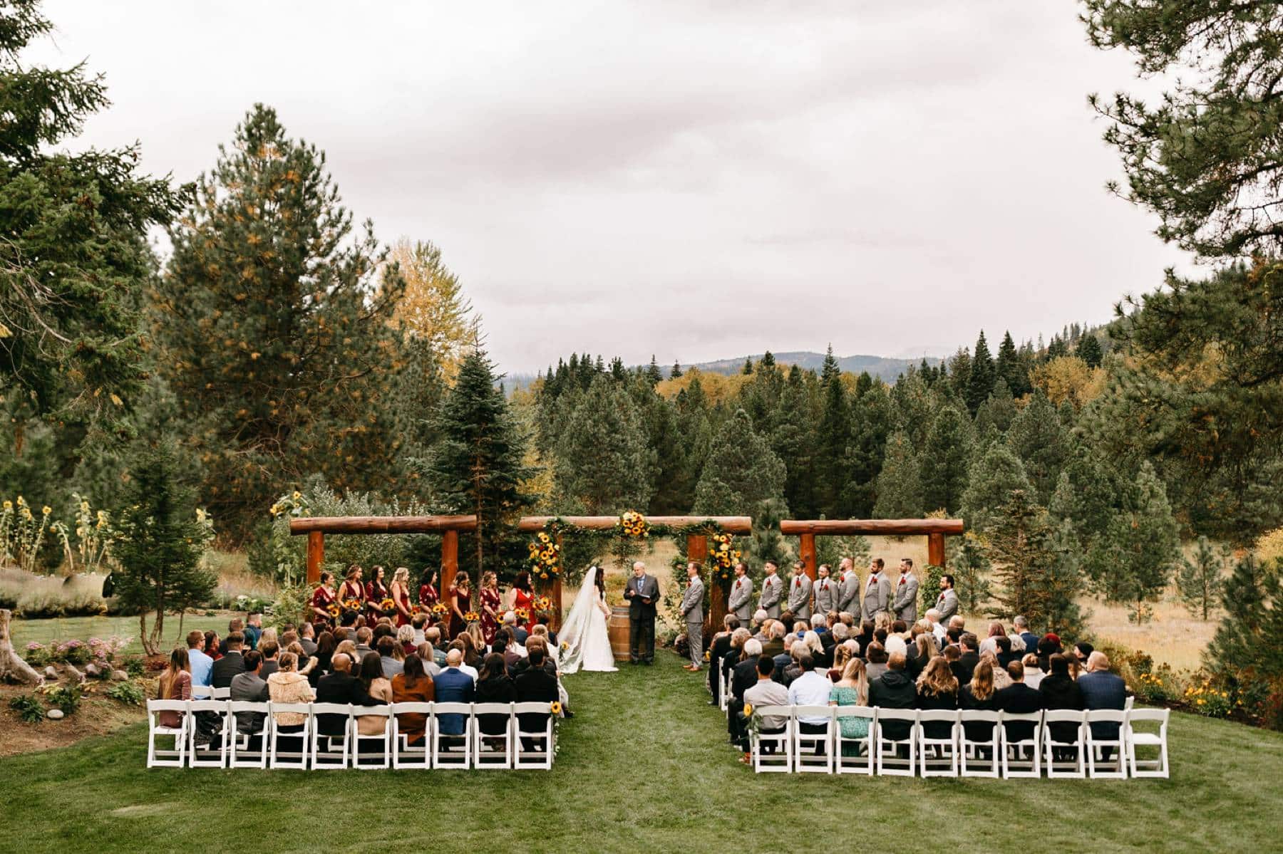 This rainy fall Pine River Ranch wedding in Leavenworth between Lucy and Tyler landed me one of my favorite drone photos of all time! But more on that in a little bit. This was the third wedding within our close group of friends, and it's always exciting to capture these special moments and witness how everyone has grown and changed over the years. Allie and Jack's wedding was the first in our circle, and we still keep in touch with each other on Instagram to this day.